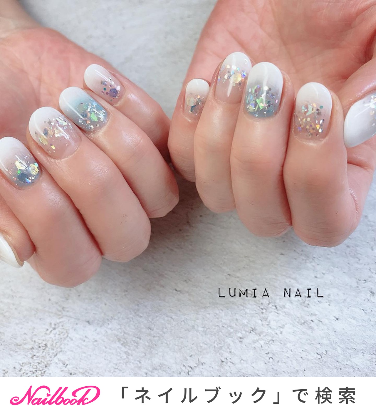 水色 白グラデーションのネイルデザイン ネイルブック